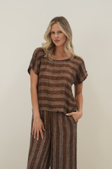 View Product indent collection Sussana Top Rust & White Stripes Sussana Top Colour/Pattern: Rust & White StripesFabric: 100% Mesh Stonewashed LinenSizes: S/M (8–14), L (16 - 20) View Product