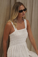 Crafted from 100% stonewashed linen, the Fia Shirred Top in Natural brings fresh, earthy elegance to...