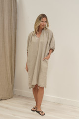 SKU: VIO910 Colour/Pattern: Oat Combo Fabric: 100% Mesh Stonewashed Linen Sizes: S/M (8–12), L (14–18)